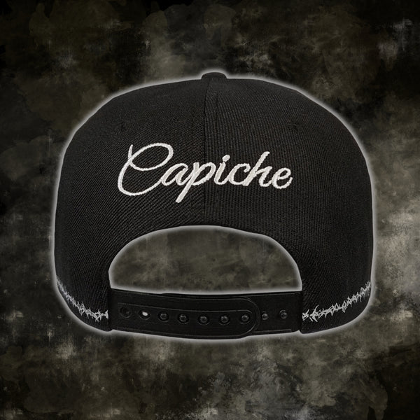 Schwarze Cap mit umlaufender Stacheldraht-Stickerei
