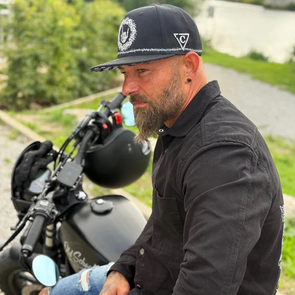 Tattoo-inspiriert und gemacht für alle, die auffallen wollen. Die Tribal Skull Snapback verbindet harte Attitüde mit Dark Art und tiefen Schwarz-Tönen. Ein echtes Statement-Piece für Rider, Rebellen und alle, die laut leben.
